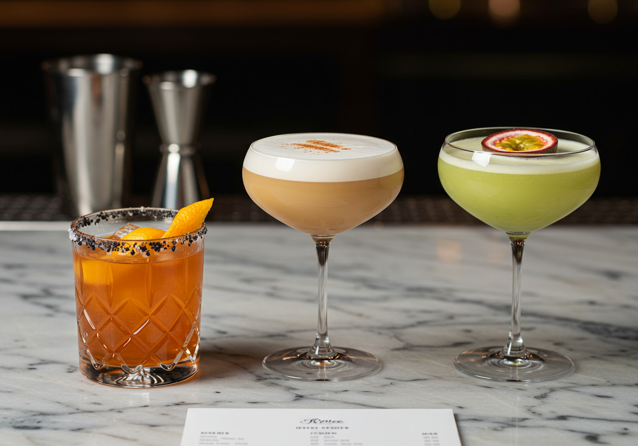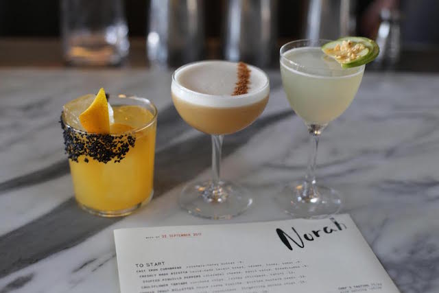 Feast your eyes on three Halloween seasonal cocktails from bar manager Andrew Harbour: The Halloween Margarita (a mix of tequila, orange, lemon & basil), Pumpkin Spice Sour (bourbon, lemon, pumpkin spice, & egg whites), and Caramel Apple Martini (vodka, apple, caramel & peanuts).