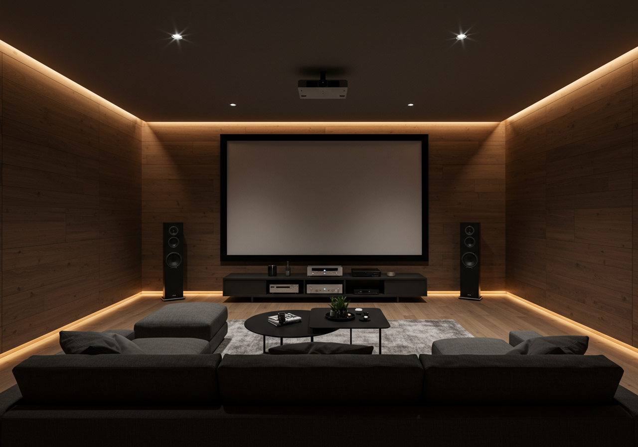 Media room — a space to host movie night, a sports event, or a gaming event. Make it your own with the latest technology, lots of comfortable seating, a beverage and snack bar, and surround sound.