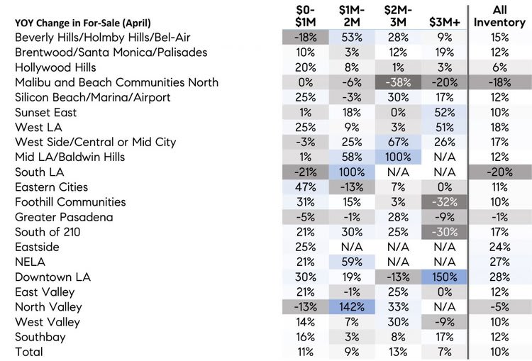 The increase in activity is mostly coming from the East side of Los Angeles, including NELA, San Gabriel, and the East Valley, but also Beverly Hills on the West side.