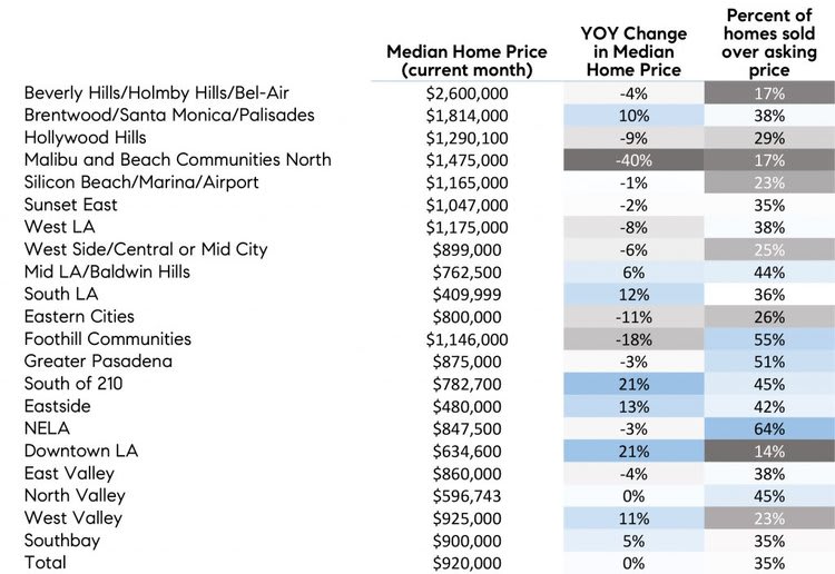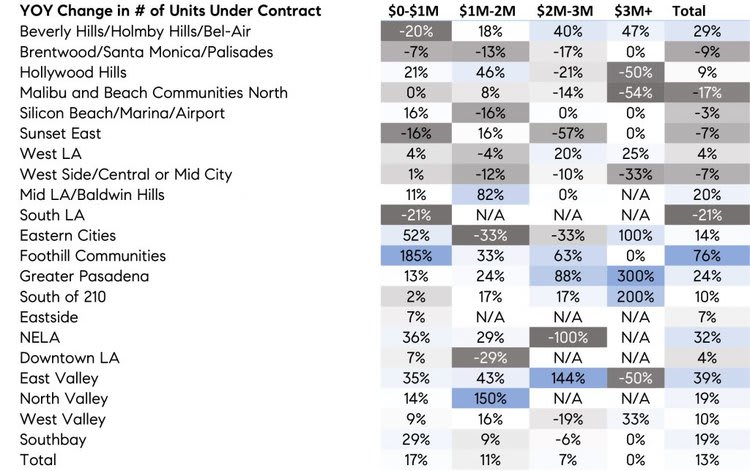 Largest increase in contracts is among homes priced below $1 million, particularly in Eastern parts of the city, namely NELA, South of 210, the East side, Foothills, and Pasadena, but also in Beverly Hills.
