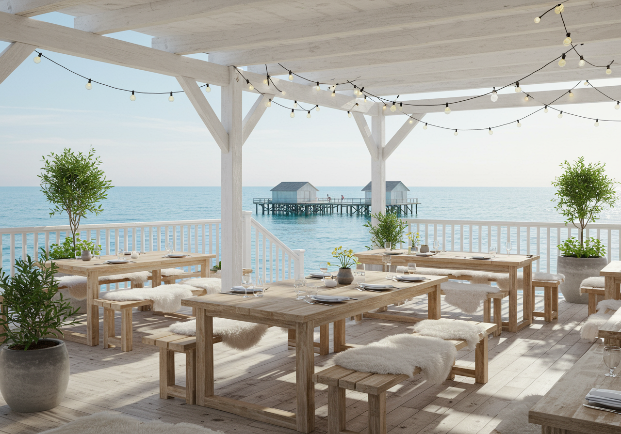 The view from Malibu Farm's main restaurant, with the cafe in the background.